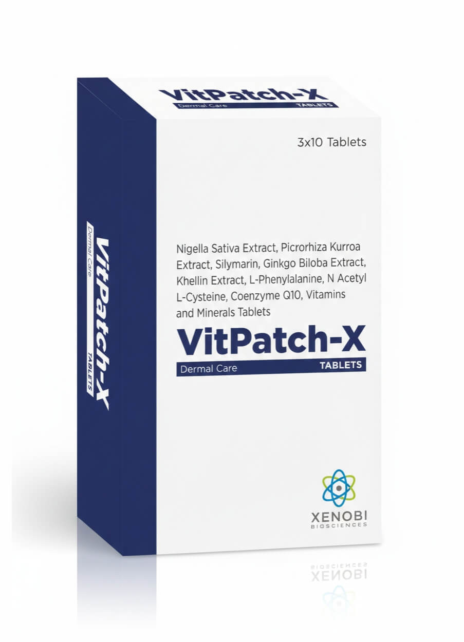 Nigella Sativa Extract 100 mg, Silymarin Extract 200 mg, Picrorrhiza Kurroa Extract 100 mg, Ginkgo Biloba Extract 100 mg, Khellin Extract 100 mg, L-phenylalanine 200 mg, N-Acetyl L-Cysteine 50 mg, Vitamin C 40 mg, Elemental Magnesium 25 mg, Nicotinamide 14 mg, Vitamin E (as powder) 10 mg, Elemental Zinc 10 mg, Elemental Iron 15 mg, Calcium Pantothenate 5 mg, Coenzyme Q10 5 mg, Vitamin B6 2 mg, Vitamin B1 2 mg, Vitamin B2 2 mg, Elemental Manganese 0.75 mg, Vitamin A 90 mcg, Elemental Copper 400 mcg, Elemental Iodine 120 mcg, Folic Acid 300 mcg, Elemental Selenium 40 mcg, Elemental Chromium 50 mcg, Vitamin D 600 I.U., Vitamin B12 2.2 mcg